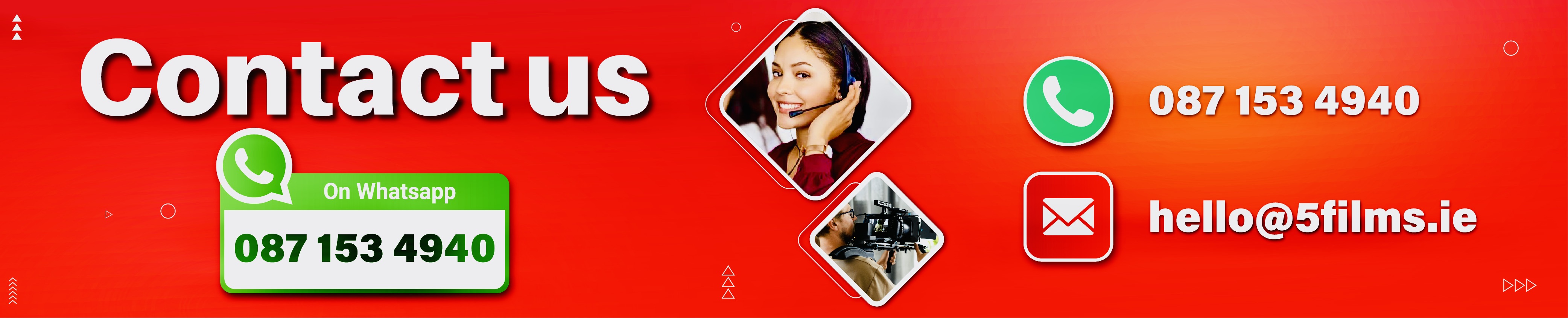 5 Films are a full service video production company based in Dublin and available nationwide throughout Ireland.We work with brands and organisations across Ireland and internationally to deliver groundbreaking and inspiring film and video content.We bring creative ideas to life.We are experts in every aspect of film and video production, from concept & script development to filming, graphics, animation & post-production.